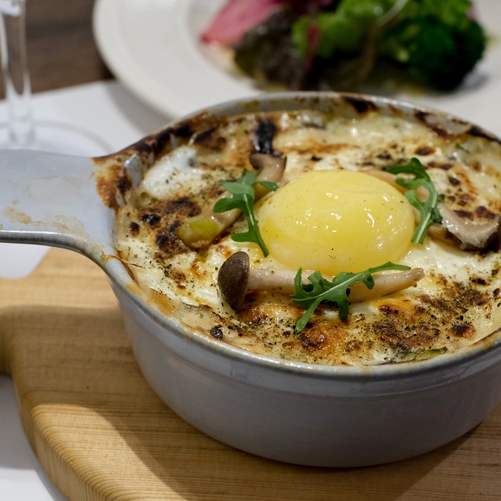 Accented with aromatic truffle powder and basil salt. Break the rich egg yolk and enjoy the melting texture of this warm, hearty winter dish.